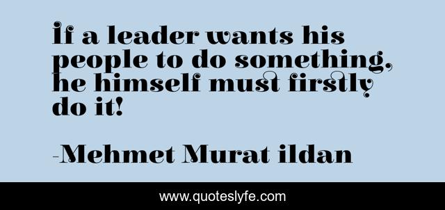 This page presents the quote "If a leader wants his people to do something, he himself must firstly do it!". Author of this quote is Mehmet Murat ildan. This quote is about turkish-aphorisms, leaders, ildan-wise-sayings, turkish, ildan-wisdom, turkish-sayings, turkish-playwrights, turkish-wisdom-words, leadership,.