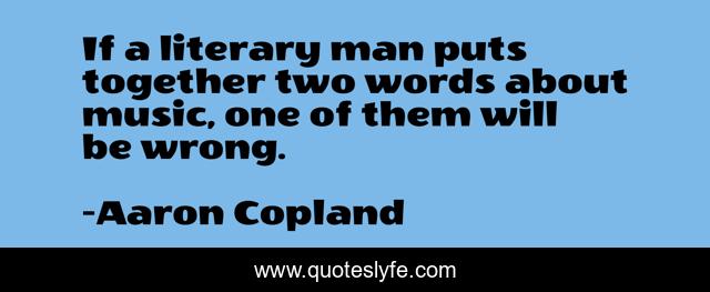 This page presents the quote "If a literary man puts together two words about music, one of them will be wrong.". Author of this quote is Aaron Copland. This quote is about together, words, man,.