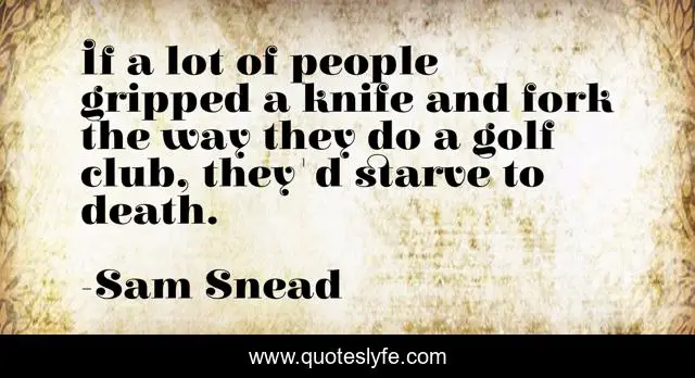 This page presents the quote "If a lot of people gripped a knife and fork the way they do a golf club, they'd starve to death.". Author of this quote is Sam Snead. This quote is about death, golf, people,.
