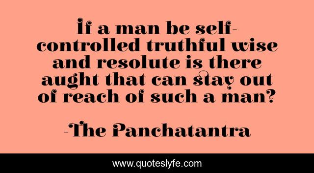 This page presents the quote "If a man be self-controlled truthful wise and resolute is there aught that can stay out of reach of such a man?". Author of this quote is The Panchatantra. .
