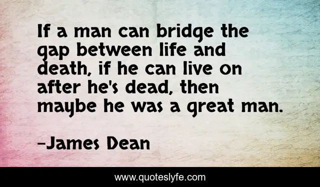 This page presents the quote "If a man can bridge the gap between life and death, if he can live on after he's dead, then maybe he was a great man.". Author of this quote is James Dean. This quote is about life, great, man,.