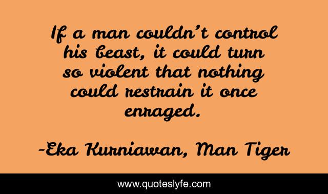 This page presents the quote "If a man couldn’t control his beast, it could turn so violent that nothing could restrain it once enraged.". Author of this quote is Eka Kurniawan, Man Tiger. .