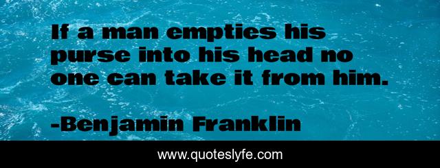This page presents the quote "If a man empties his purse into his head no one can take it from him.". Author of this quote is Benjamin Franklin. .