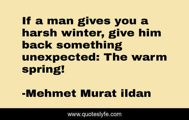 This page presents the quote "If a man gives you a harsh winter, give him back something unexpected: The warm spring!". Author of this quote is Mehmet Murat ildan. .