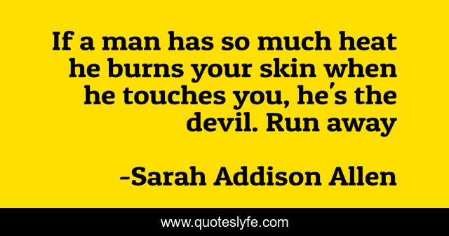 This page presents the quote "If a man has so much heat he burns your skin when he touches you, he's the devil. Run away". Author of this quote is Sarah Addison Allen. This quote is about truth, women,.