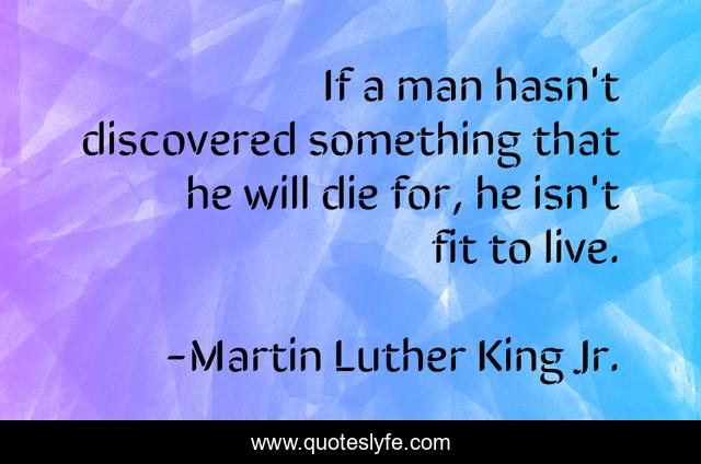 This page presents the quote "If a man hasn't discovered something that he will die for, he isn't fit to live.". Author of this quote is Martin Luther King Jr.. This quote is about sacrifice, purpose,.