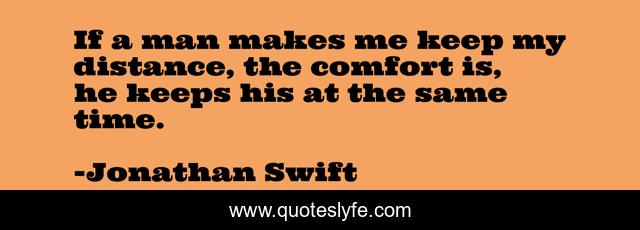 This page presents the quote "If a man makes me keep my distance, the comfort is, he keeps his at the same time.". Author of this quote is Jonathan Swift. This quote is about humanity, mankind,.