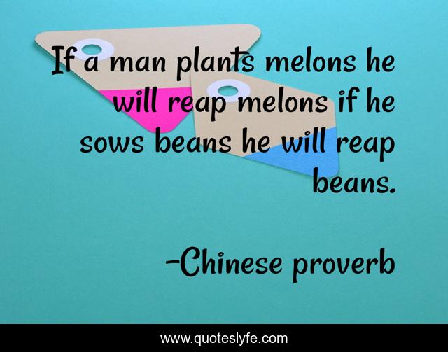 This page presents the quote "If a man plants melons he will reap melons if he sows beans he will reap beans.". Author of this quote is Chinese proverb. This quote is about positive, confidence,.