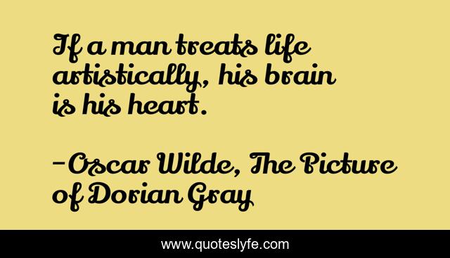 This page presents the quote "If a man treats life artistically, his brain is his heart.". Author of this quote is Oscar Wilde, The Picture of Dorian Gray. .