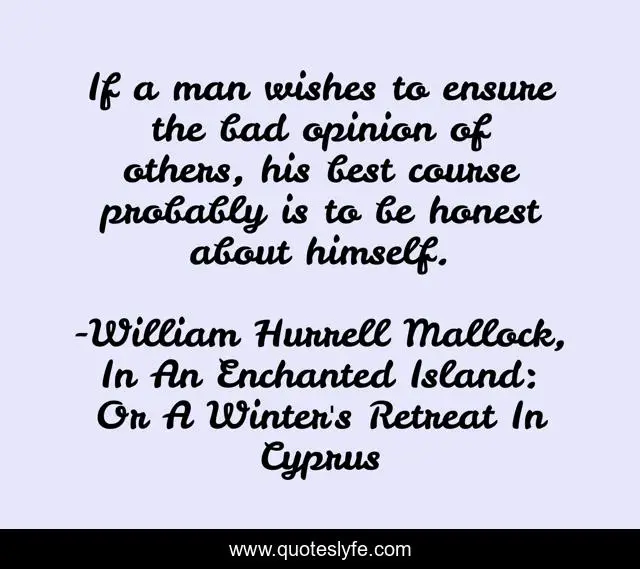 This page presents the quote "If a man wishes to ensure the bad opinion of others, his best course probably is to be honest about himself.". Author of this quote is William Hurrell Mallock, In An Enchanted Island: Or A Winter's Retreat In Cyprus. This quote is about opinions-of-others, honesty,.