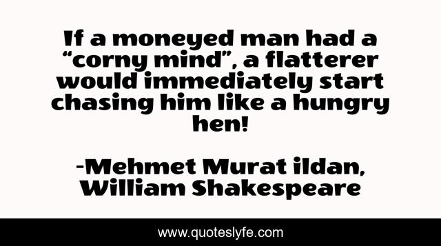 This page presents the quote "If a moneyed man had a “corny mind”, a flatterer would immediately start chasing him like a hungry hen!". Author of this quote is Mehmet Murat ildan, William Shakespeare. .