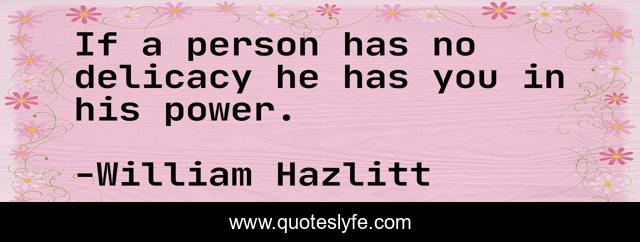 "William Hazlitt Quotes." Quoteslyfe.com, 2025. Mon. 08 Dec. 2025. <https://www.quoteslyfe.com/quote/If-a-person-has-no-delicacy-he-277219>.