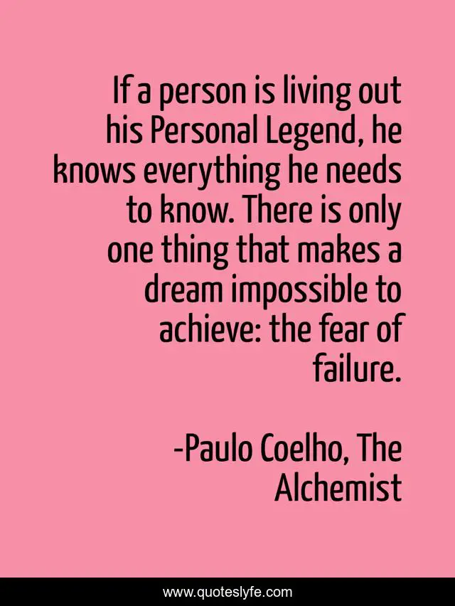If a person is living out his Personal Legend, he knows everything he needs to know. There is only one thing that makes a dream impossible to achieve: the fear of failure.