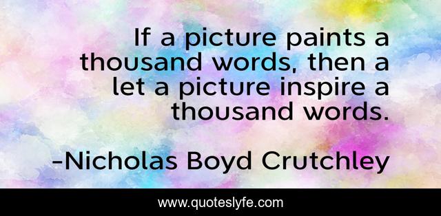 This page presents the quote "If a picture paints a thousand words, then a let a picture inspire a thousand words.". Author of this quote is Nicholas Boyd Crutchley. This quote is about pictures, art, inspiration,.