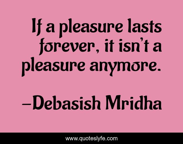 This page presents the quote "If a pleasure lasts forever, it isn’t a pleasure anymore.". Author of this quote is Debasish Mridha. This quote is about life, love, knowledge, inspirational, intelligence, philosophy, wisdom, quotes, affection,.