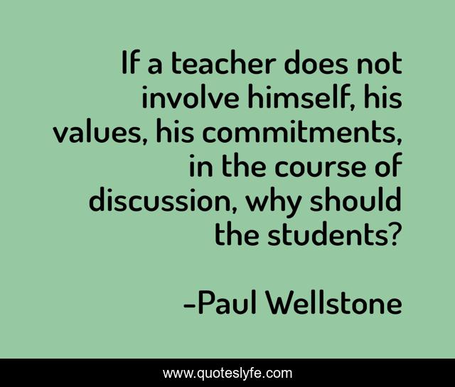 This page presents the quote "If a teacher does not involve himself, his values, his commitments, in the course of discussion, why should the students?". Author of this quote is Paul Wellstone. This quote is about students, values, why,.