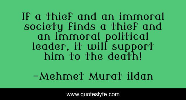 This page presents the quote "If a thief and an immoral society finds a thief and an immoral political leader, it will support him to the death!". Author of this quote is Mehmet Murat ildan. This quote is about thief-society, murat-ildan, thief, immoral-politicians, to-the-death, politicians, thieves, immoral-society,.