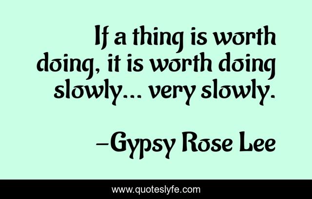 This page presents the quote "If a thing is worth doing, it is worth doing slowly... very slowly.". Author of this quote is Gypsy Rose Lee. .