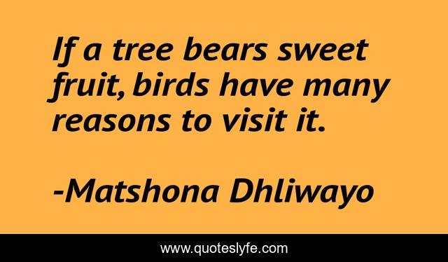 "Matshona Dhliwayo Quotes." Quoteslyfe.com, 2025. Sat. 06 Dec. 2025. <https://www.quoteslyfe.com/quote/If-a-tree-bears-sweet-fruit-birds-98035>.