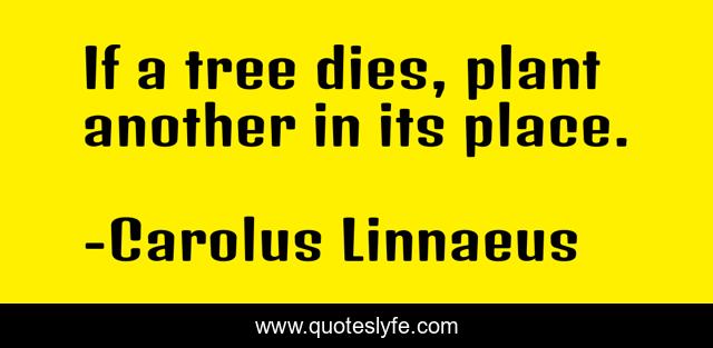 This page presents the quote "If a tree dies, plant another in its place.". Author of this quote is Carolus Linnaeus. This quote is about tree, plant, place,.