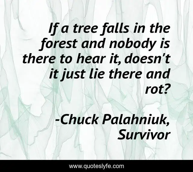 "Chuck Palahniuk, Survivor Quotes." Quoteslyfe.com, 2025. Sat. 06 Dec. 2025. <https://www.quoteslyfe.com/quote/If-a-tree-falls-in-the-forest-256849>.