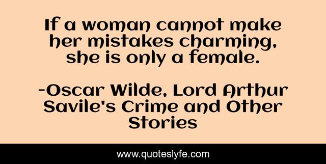 This page presents the quote "If a woman cannot make her mistakes charming, she is only a female.". Author of this quote is Oscar Wilde, Lord Arthur Savile's Crime and Other Stories. This quote is about love, people, females-people, mistakes, charismatic, funny, humor, charisma, comedy,.