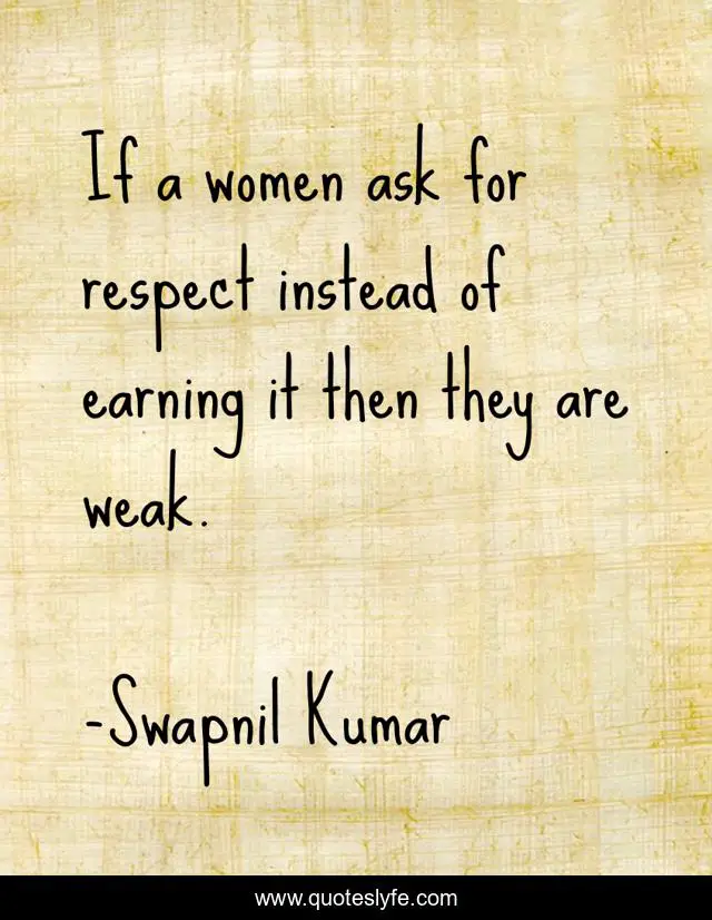 This page presents the quote "If a women ask for respect instead of earning it then they are weak.". Author of this quote is Swapnil Kumar. This quote is about respect, men, women,.