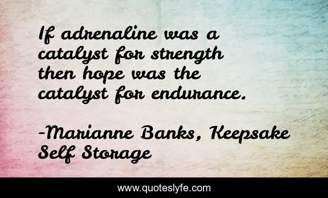 This page presents the quote "If adrenaline was a catalyst for strength then hope was the catalyst for endurance.". Author of this quote is Marianne Banks, Keepsake Self Storage. .