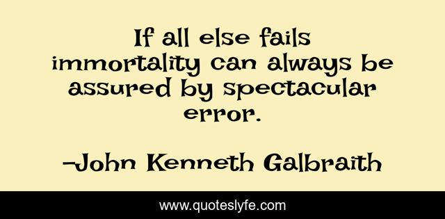 This page presents the quote "If all else fails immortality can always be assured by spectacular error.". Author of this quote is John Kenneth Galbraith. This quote is about failures, mistakes,.