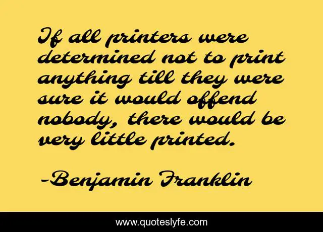 This page presents the quote "If all printers were determined not to print anything till they were sure it would offend nobody, there would be very little printed.". Author of this quote is Benjamin Franklin. This quote is about books, reading, censorship,.