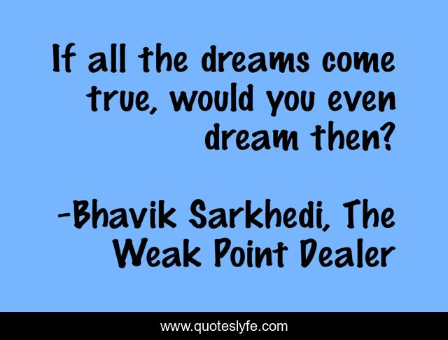 "Bhavik Sarkhedi, The Weak Point Dealer Quotes." Quoteslyfe.com, 2025. Fri. 05 Dec. 2025. <https://www.quoteslyfe.com/quote/If-all-the-dreams-come-true-would-53550>.