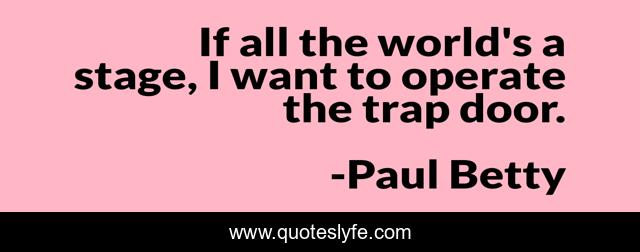 This page presents the quote "If all the world's a stage, I want to operate the trap door.". Author of this quote is Paul Betty. This quote is about imaginative, inspiring, clever, creative,.