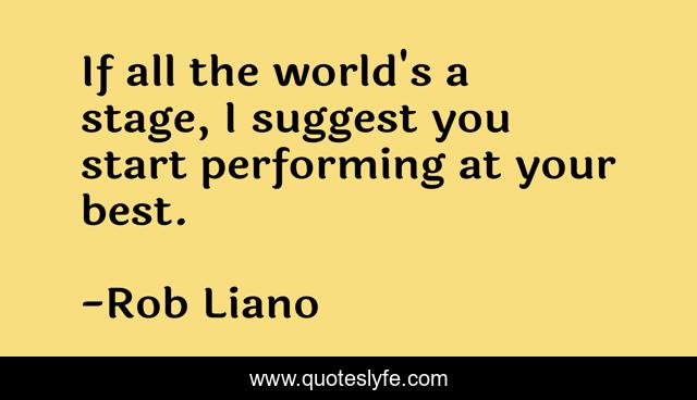 This page presents the quote "If all the world's a stage, I suggest you start performing at your best.". Author of this quote is Rob Liano. This quote is about action, accomplishment, success,.