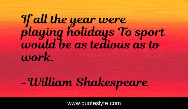 This page presents the quote "If all the year were playing holidays To sport would be as tedious as to work.". Author of this quote is William Shakespeare. .
