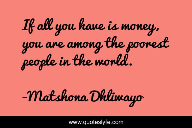 "Matshona Dhliwayo Quotes." Quoteslyfe.com, 2025. Mon. 08 Dec. 2025. <https://www.quoteslyfe.com/quote/If-all-you-have-is-money-you-49840>.