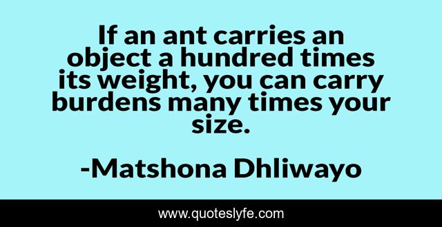 "Matshona Dhliwayo Quotes." Quoteslyfe.com, 2025. Fri. 05 Dec. 2025. <https://www.quoteslyfe.com/quote/If-an-ant-carries-an-object-a-83405>.