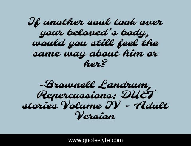 "Brownell Landrum, Repercussions: DUET stories Volume IV - Adult Version Quotes." Quoteslyfe.com, 2025. Tue. 09 Dec. 2025. <https://www.quoteslyfe.com/quote/If-another-soul-took-over-your-beloved-63294>.