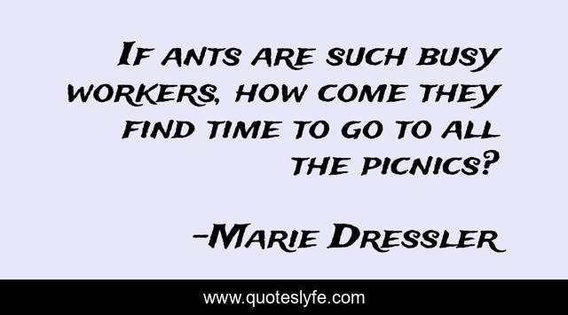 This page presents the quote "If ants are such busy workers, how come they find time to go to all the picnics?". Author of this quote is Marie Dressler. This quote is about workers, busy, find,.