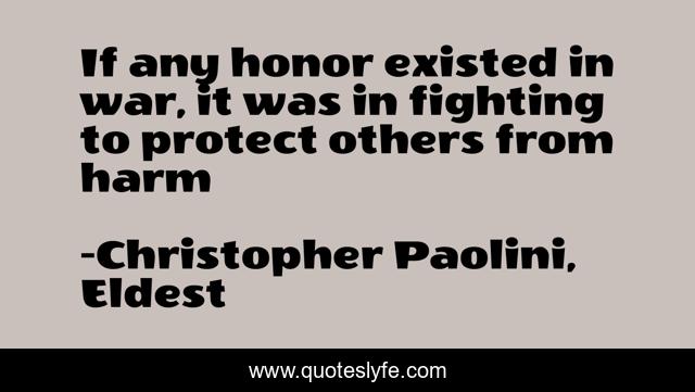 This page presents the quote "If any honor existed in war, it was in fighting to protect others from harm". Author of this quote is Christopher Paolini, Eldest. This quote is about protect, honor, war,.