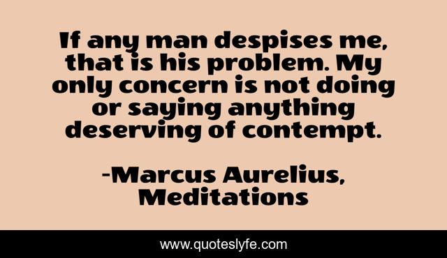 This page presents the quote "If any man despises me, that is his problem. My only concern is not doing or saying anything deserving of contempt.". Author of this quote is Marcus Aurelius, Meditations. This quote is about character, public-opinion,.