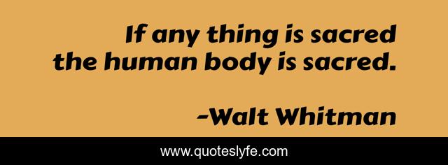 This page presents the quote "If any thing is sacred the human body is sacred.". Author of this quote is Walt Whitman. .