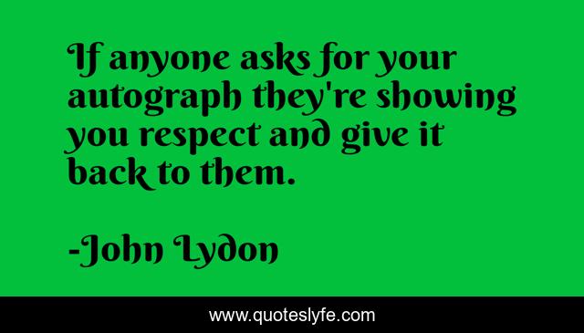 This page presents the quote "If anyone asks for your autograph they're showing you respect and give it back to them.". Author of this quote is John Lydon. This quote is about back, give,.