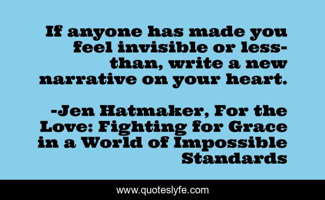 This page presents the quote "If anyone has made you feel invisible or less-than, write a new narrative on your heart.". Author of this quote is Jen Hatmaker, For the Love: Fighting for Grace in a World of Impossible Standards. This quote is about heart, renewal,.