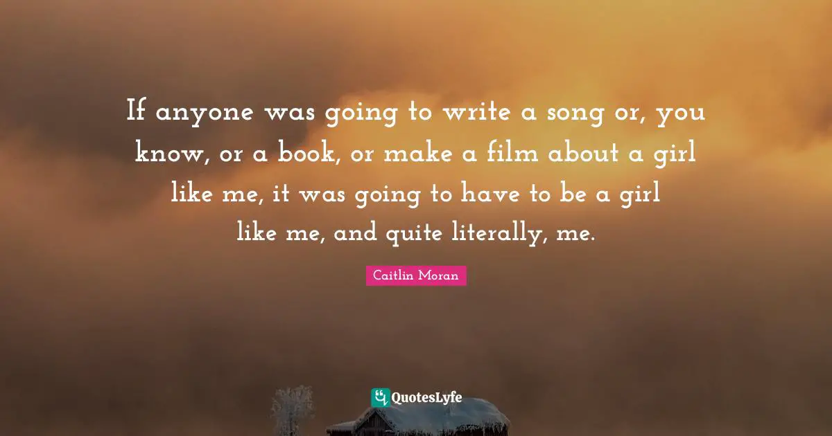 This page presents the quote "If anyone was going to write a song or, you know, or a book, or make a film about a girl like me, it was going to have to be a girl like me, and quite literally, me.". Author of this quote is Caitlin Moran. This quote is about song, like me, film, girl, book,.