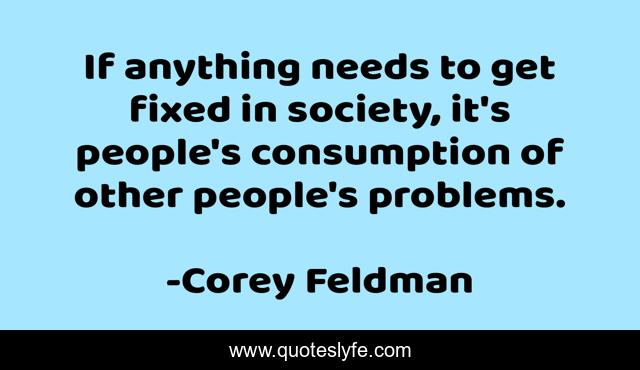 This page presents the quote "If anything needs to get fixed in society, it's people's consumption of other people's problems.". Author of this quote is Corey Feldman. This quote is about problems, people,.