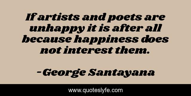 This page presents the quote "If artists and poets are unhappy it is after all because happiness does not interest them.". Author of this quote is George Santayana. This quote is about art, artist,.