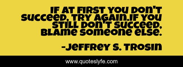 This page presents the quote "If at first you don't succeed, try again.If you still don't succeed, blame someone else.". Author of this quote is Jeffrey S. Trosin. .
