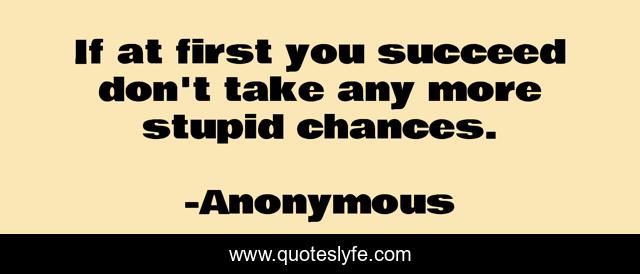 This page presents the quote "If at first you succeed don't take any more stupid chances.". Author of this quote is Anonymous. .