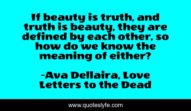 This page presents the quote "If beauty is truth, and truth is beauty, they are defined by each other, so how do we know the meaning of either?". Author of this quote is Ava Dellaira, Love Letters to the Dead. This quote is about beauty, truth, words, meaning-of,.