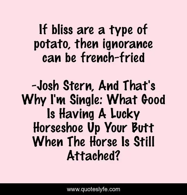 "Josh Stern, And That's Why I'm Single: What Good Is Having A Lucky Horseshoe Up Your Butt When The Horse Is Still Attached? Quotes." Quoteslyfe.com, 2025. Mon. 08 Dec. 2025. <https://www.quoteslyfe.com/quote/If-bliss-are-a-type-of-potato-166724>.